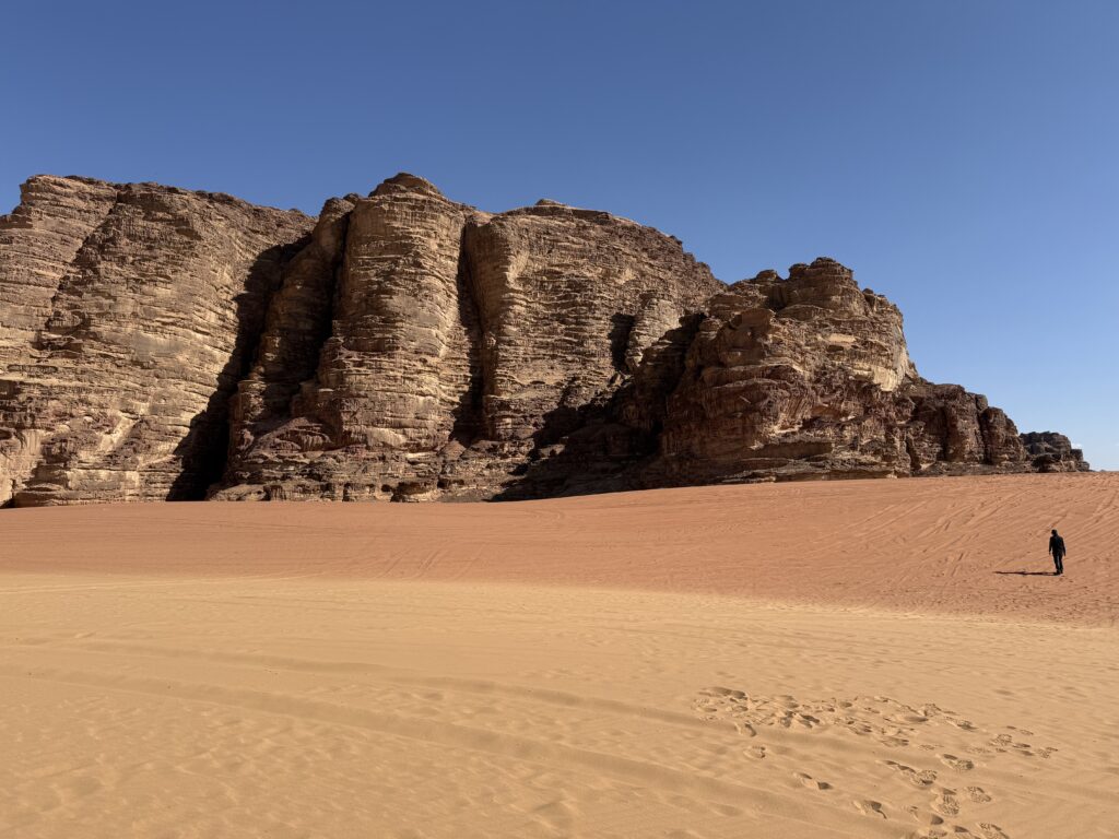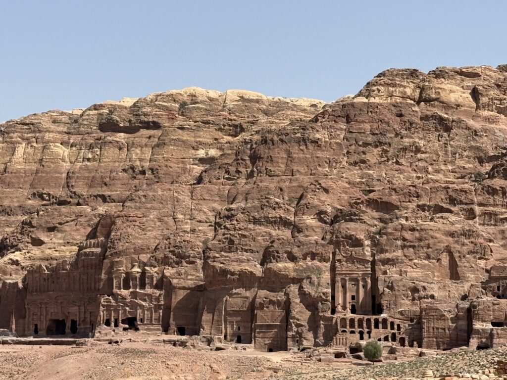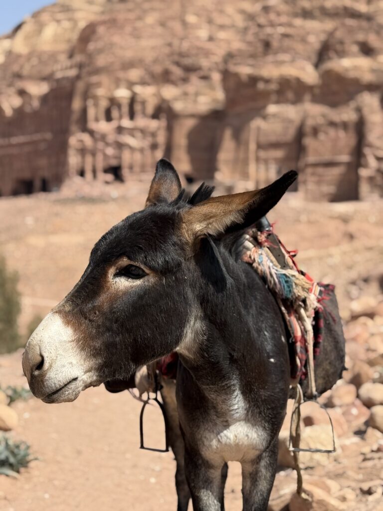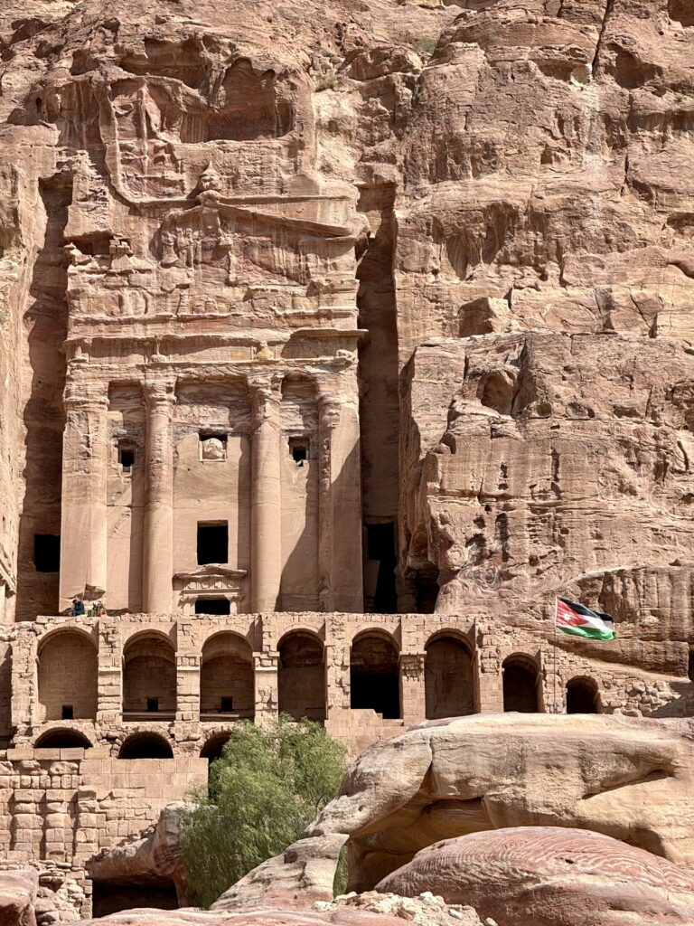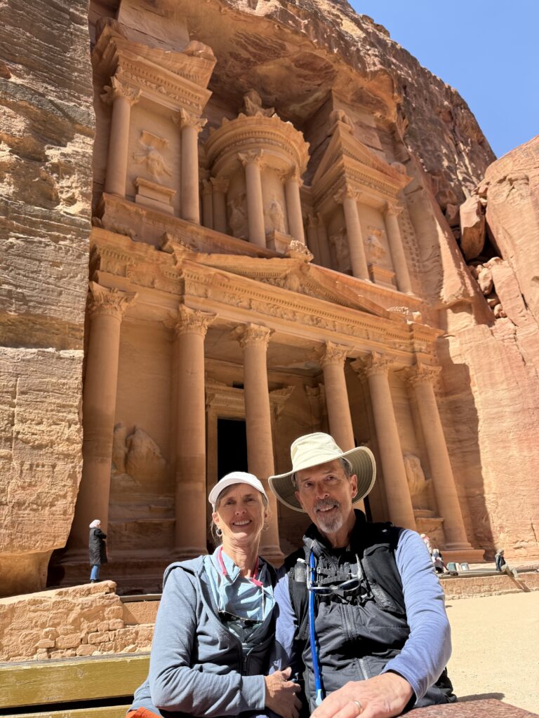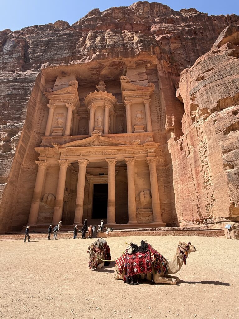 We head first to Wadi Rum, a desert region just to the east, mostly known as backdrops in the Star Wars and Dune movies, among many others. The scenery is stunning and serene, harkening to the majesty of the Southwest, and we have the place almost to ourselves. We are the only guests at our bubble camp, the rest being forced to cancel due to airspace being shut down since Saturday. We enjoy the beautiful desert scenery from the bed of a pickup truck, faces in the wind like dogs’ noses out the window, soaking it all in. The experience however is dampened whenever our phones reconnect receiving outreach from friends and family with concern as the war situation worsens. It is hard to reconcile while living in such solitude except for the consistent JAF jets patrolling their skies. On our second day after Trump proclaims a month of non-stop attacks on Iran, we start to seriously research our options. We cancel our arrangements further north to the Dead Sea bordering Israel and to Amman which has military installations nearby. But we are a mere 1.5 hrs from the UNESCO World Heritage site of Petra, the key reason for our visit, which we are reluctant to leave without seeing. With a flurry of texting and reservation making, we hatch a plan for the next day.