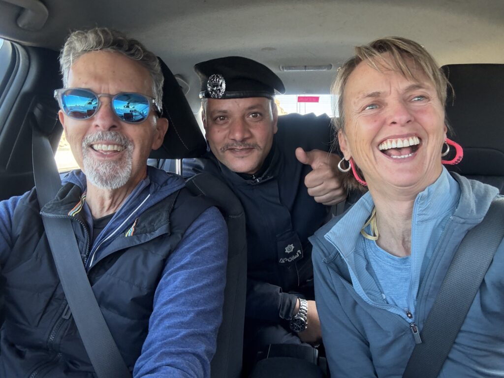 Wednesday March 4th is a very long day. Up at 6am, we’re on the road by 7:30am headed to Petra. Once on the main highway we hit a police checkpoint where they ask our nationality and destination – standard fare. When we mention Petra, the police officer asks if he can hitch a ride! A police escort? Yes please! We quickly become fast friends, exchanging family photos, sharing food, wife jokes (“one is MORE than enough!”), and even Facebook profiles! Mohammed says we are like “blood and sugar” – blood like family and sugar like sweetness – and again he says we should reach out if we need anything at all. For us, he is a gift from Allah.