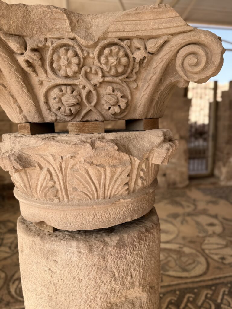 After dropping Mohammed off near his home, we head to Petra. Surrounded by the most dramatic of rugged sandstone landscapes, we walk down the Siq, a mile long gorge entrance to this ancient Nabataean civilization positioned at the crossroads of trade and pilgrim routes. The big reveal of the fabled Treasury facade via a sliver in the gorge takes my breath away! With only ~200 tourists due to the war situation compared to an average of 5-7,000, we are again enjoying this Wonder of the World almost to ourselves! Our guide takes us through the site sharing both historical and cultural tidbits to imagine this city of 30k inhabitants enhanced by the flow of journeying pilgrims and traders. With our visit shortened from 2 days to only 5 hours, we hit the highlights before hitting the road. We drive 2 hours down the Kings Highway, past a Japanese-sponsored windmill farm and towns rivaling Sausalito for steepest neighborhoods.