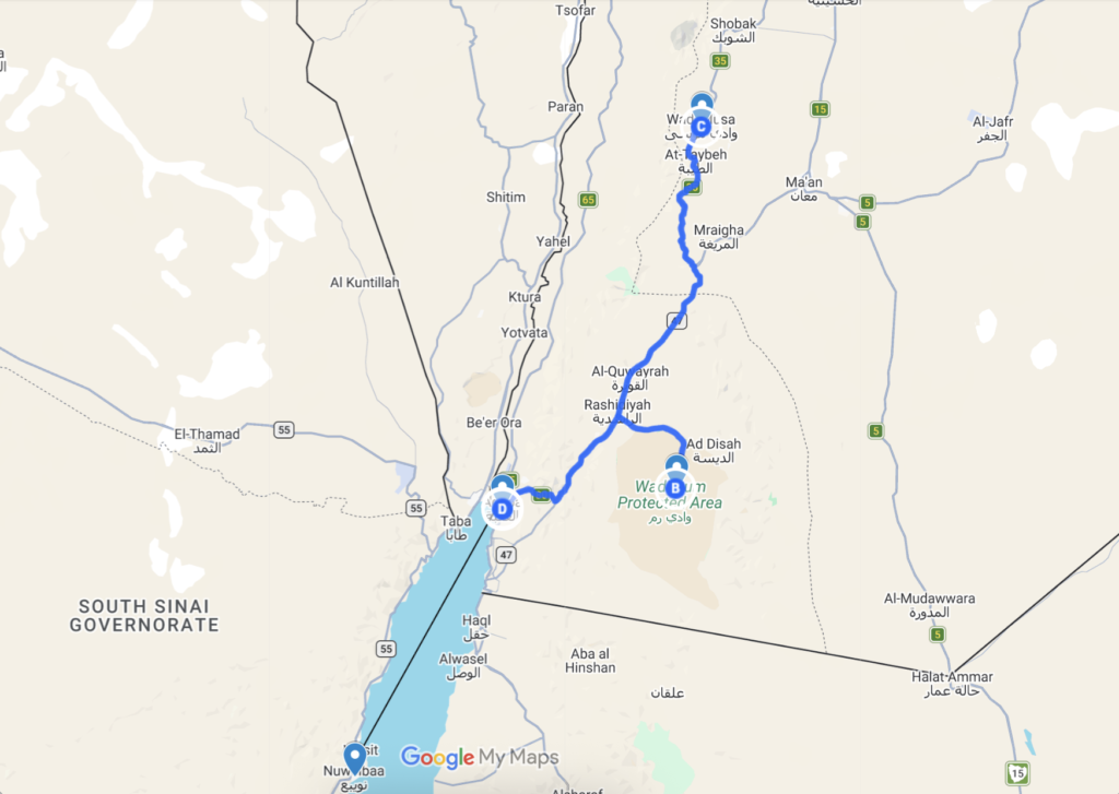 On Saturday February 28th we grab a 2.5 hr ferry from Nuweiba, Egypt to Aqaba, Jordan, sailing with only 5 other foreigners in a sea of Arabs, when we get tipped off that the US and Israeli have attacked Iran – an auspicious start to this leg of our journey. We very much appreciate the powerful WiFi in our hotel where we absorb the news and plan our next steps. We learn the siren code – 3 blasts for possible danger, 1 blast for all clear – and watch the locals carry on without regard. We pick up our rental car for our 2 week visit traveling south to north and take a private walking tour of Aqaba with a local guide. Throughout Jordanians urge us that this is business as usual – they’re used to life in a tough neighborhood and watching the missiles soar above. Since Eilat, Israel, is just across the bay, somewhat like SF to Oakland, one woman said she and her friends like to watch the missile displays with snacks on their rooftop as entertainment. It’s all a bit surreal but we take cues from our hosts and try to take it all in stride. Jordan is known as the Switzerland of the Middle East, more interested in brokering regional peace, so they tend not to be the target of aggressions and mostly just receive random debris fallout. They are however friendly towards and coordinate with the US, putting their military bases at risk. Every Jordanian encourages us to stay, ensuring us that our visit wouldn’t be impacted, and offering to house and help us should we need. Their generosity and composure are certainly encouraging.